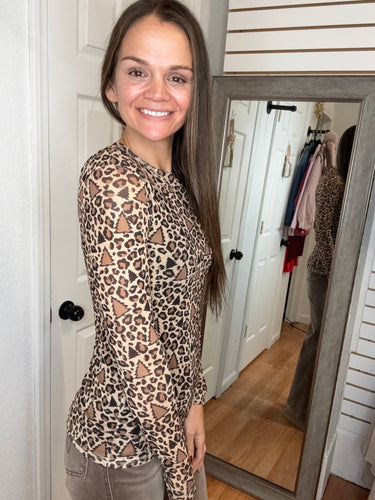 OUR HOLIDAY MESH PRINTS ARE HERE IN MESH TOPS!! Super cute for layering, this sultry stretchy mesh print long-sleeve top, features a totally sheer design. Perfect worn alone or paired under your favorite cardigan, vest or sweater! Crew neck and thumbhole details.