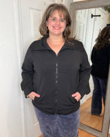 Stay cozy and stylish with the Marlena Marshmallow Full Zip Jacket in black by Rae Mode. Crafted from soft marshmallow fabric, this jacket offers gentle warmth and comfort for chilly days. The full zip design provides easy layering, making it perfect for everyday wear. Embrace relaxed warmth without sacrificing style in this versatile wardrobe essential.