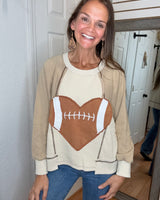 Embrace your passion with the LOVE OF THE GAME Sweatshirt - BIBI. This oversized pullover features a bold football design, blending comfort and style effortlessly. Perfect for game days or casual wear, it keeps you cozy while showcasing your love for the sport. Stay comfortable and confident, wherever your day takes you.