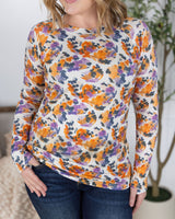 IN STOCK Blair Long Sleeve Top - Autumn Purple Abstract