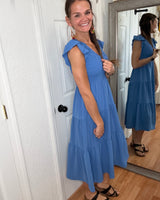 KENNEDY - FLUTTER SLEEVE MIDI DRESS - BLUE - BLU PEPPER