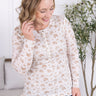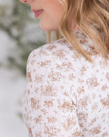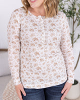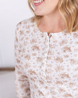 IN STOCK Button Snap Henley Top - Tan Micro Floral