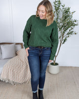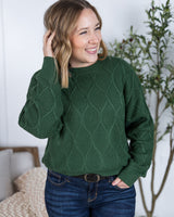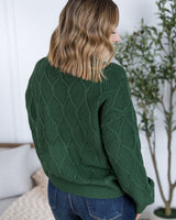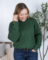 Stay stylish and cozy this Fall with our Carson Pullover in Green. Embrace the season with its diamond design, perfect for pairing with dark jeans and fall booties. Don't forget to add a touch of quirk to your wardrobe this season. Although this pullover doesn't have a soft sweater like fabric in the interior it offers a more lightweight knit fabric perfect for layering!