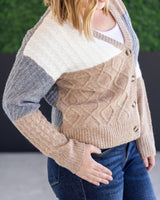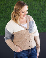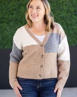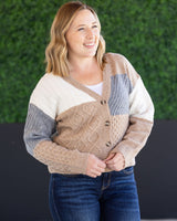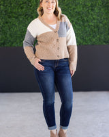 Snuggle up in our Colorblock Cozy Cardigan! This irresistibly soft button-up features stylish neutral colorblocking that pairs with everything in your wardrobe. The short length makes it perfect for high-waisted bottoms or dresses. Warning: friends may try to steal this cloud-like cardigan for themselves!