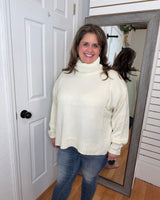 FEATURES: TURTLENECK, MOM CROP LENGTH, RIBBED TRIM WRIST, HEMLINE AND NECK. SIDE SLITS, DROP SHOULDER