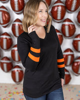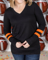 Score a touchdown in style with our GameDay Larissa Long Sleeve Top! This fan-favorite top will make you stand out in the crowd with your favorite team color combo. Perfect for showing off your team spirit!