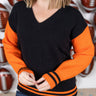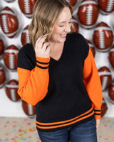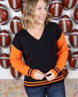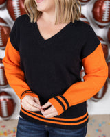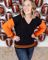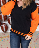 This cozy GameDay Sweater is made from soft sweater fabric, perfect for staying warm and comfortable. The color combo adds a touch of team spirit to your outfit. Wear this to represent your team on game day!