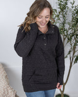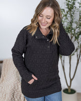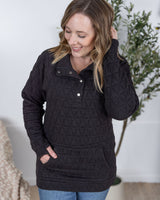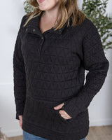 This Geometric Button Snap Pullover is a luxurious combination of class and femininity. Experience the chic of quilted fabric adorned with a geometric pattern, topped of with a fabric that feels like a cloud. Button snap closure and convenient front pocket. Feel your best in this sophisticated and exclusive pullover!
