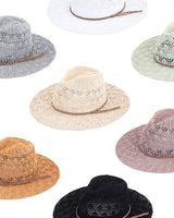 Description: C.C horseshoe lace knitting panama hat with braided suede trim band