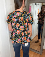 This Marie Tie Front Peplum Blouse Top combines charming details with comfortable wear. Featuring a front ribbon bow tie and a round neckline, it offers a flattering fit. The babydoll silhouette with puff bubble short sleeves adds a playful touch, while the floral print woven fabric brings a fresh, feminine vibe. Perfect for adding a delicate, stylish layer to your wardrobe, this blouse supports your look with both comfort and elegance.