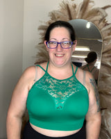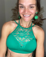 HIGH NECK LACE CUTOUT SEAMLESS BRALETTE