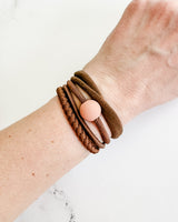 We are in love with our new hair ties that also serve as cute bracelets! These are elastic and includes a set of five ties! Classy yet trendy rope designs are the perfect addition to your daily look while providing high function to pull your hair back!