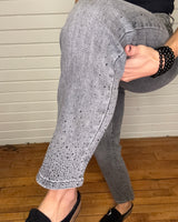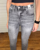 Judy Blue Straight Leg Rhinestone Denim- Washed Grey