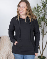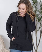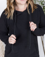 Stay stylish and comfy in our Kacey Ribbed Hoodie. Features include a side slit for a unique twist and high low design that is perfect to pair with leggings, as well as cuff sleeves! This lightweight hoodie is perfect for a casual day out.