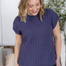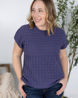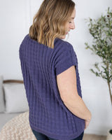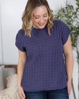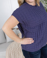 The cozy Kelly Knitted Top is perfect for fall, made with a sweater-like fabric for ultimate comfort. Its knitted design adds a touch of texture and style. Stay warm and stylish with this playful and quirky top in slate purple.