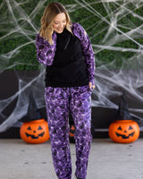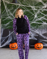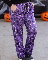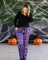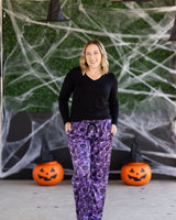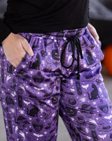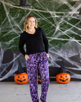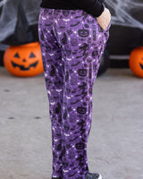 Embrace the spooky season with our lounge pants! Features a stretchy waistband and adjustable tie, these pants offer ultimate comfort while keeping your essentials close in the pockets. Perfect to wear for the Halloween season whether you are trick-or-treating or handing out candy-these are your go-to lounge pants for the season!