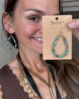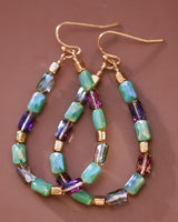 Turquoise Mixed Glass Crystal Earrings | Teardrop Dangle Earrings | Wire Beaded Earrings |