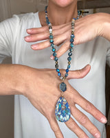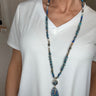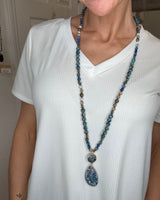 Approx. 34" L. Pendant size: 1.2"x3" Color, size, pattern may vary. Blue Sea Sediment Imperial Jasper Necklace | Healing Crystal Necklace