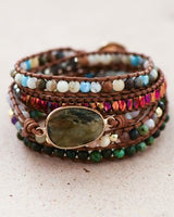 Leather Cord 5-Wrap Bracelet: Spiritual Gemstone Energy, Holistic Healing, and Crystal Meditation. Size, color and pattern may vary. Gray Labradorite Stone Bracelet