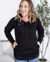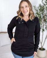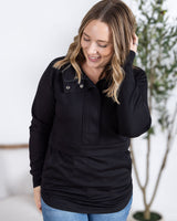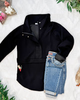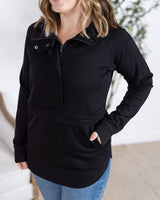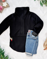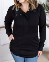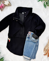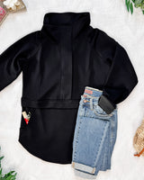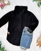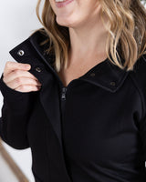 Unleash your playful side with the Mia Scuba Halfzip. Made from scuba fabric, this pullover features a faux center lappet, halfzip, pockets, and two snap buttons at the collar for extra warmth. With a curved hemline and cuff sleeves, it's perfect for adding a touch of quirk to any outfit. (And yes, it's as fun to wear as it sounds!)