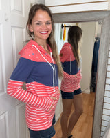 LIBERTY STARS NAVY AND STRIPES FULLZIP HOODIE - MICHELLE MAE