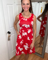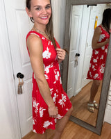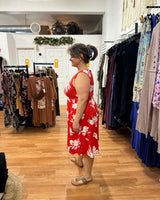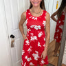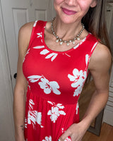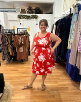 Effortlessly stylish and functional, the Kelsey Tank Dress features a gorgeous red with white floral print and convenient pockets. Perfect for any summer occasion. With its timeless design and practical pockets, this dress is a must-have for any wardrobe.