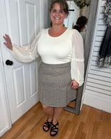 OLIVINE MINI SKIRT BROWN/CREAM HOUNDSTOOTH - MIKAROSE