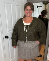 The Olivine Mini Skirt in brown and cream houndstooth offers a timeless pattern that complements your wardrobe with ease. Its flattering mini length is perfect for layering or wearing alone, delivering both comfort and style. This versatile skirt pairs beautifully with casual tops or dressier blouses, making it a supportive staple for any occasion.