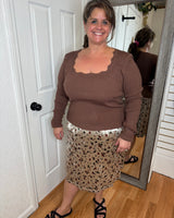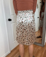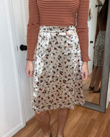 The TALIA A Line Skirt in velour floral fabric offers a comfortable fit with a flattering silhouette. Its soft texture and floral design add a touch of elegance to your wardrobe, perfect for both casual and dressier occasions. This skirt combines style and comfort, making it an easy choice for versatile everyday wear.