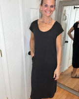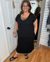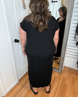The Marissa Midi Length Dress in black offers a flattering rounded neck and a comfortable mid-length cut, perfect for versatile wear. Designed to provide both style and ease, this dress suits various occasions, ensuring you feel confident and supported throughout your day.