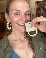Natural Wood and Mint Seed Bead 1.75" Hoop Earring E-2941MT |