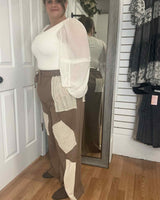 TESSELLA FLORAL PATCHWORK PANTS IN MOCHA - ODDI