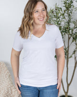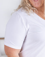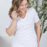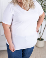 The Olivia Tee is a versatile basic for any wardrobe. With its classic V-neck and short sleeve design, this tee is perfect for layering or wearing on its own. The soft, breathable fabric ensures all-day comfort, making it an essential piece for any casual look.