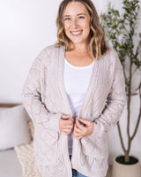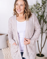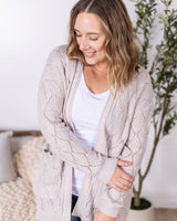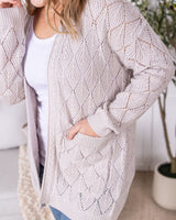 Cozy up in style with our Open Knit Cardigan in neutral. Made with an open knit design and featuring two convenient pockets, this cardigan is perfect for those chilly days. Stay warm and fashionable with this must-have addition to your wardrobe!