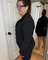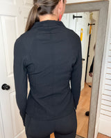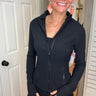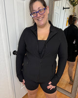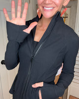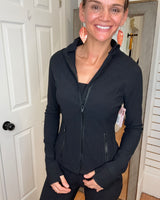 Crafted from butter-soft 2x2 nylon rib fabric with 4-way stretch, this slim-fit jacket offers maximum mobility. It features long sleeves with thumbhole details, a full zipper closure, and convenient side zip pockets. Perfect for layering up to and from your workout, this jacket combines functionality and fashion seamlessly.