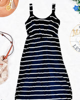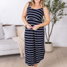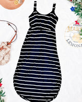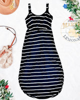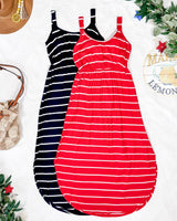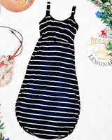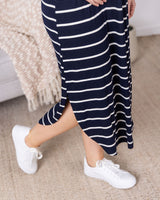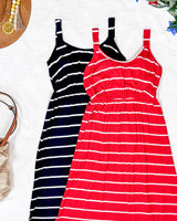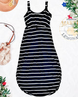 IN STOCK Reagan Ribbed Midi Dress - Midnight Navy Stripes FINAL SALE