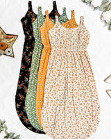 IN STOCK Reagan Ribbed Midi Dress - Sand and Rust Floral