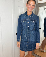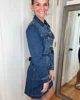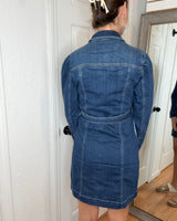 The NYRA Denim Risen dress features stylish puffed sleeves that add a feminine touch to classic denim. Designed for comfort and ease, this dress moves with you while maintaining a flattering silhouette. Perfect for casual outings or a relaxed day at work, it combines timeless denim durability with modern design details for versatile wear.