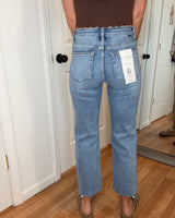 MID RISE CROP STRAIGHT RHINESTONE JEANS