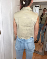 MARYN DISTRESSED DENIM VEST KHAKI- RISEN