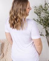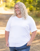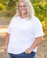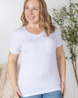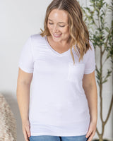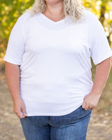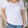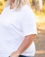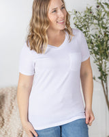 The Sophie Pocket Tee in White is the ultimate classic for any wardrobe. This V-neck tee features a simple and clean design, perfect for layering or wearing alone. Made from a soft and stretchy fabric, it offers a comfortable and flattering fit that’s versatile for any occasion.