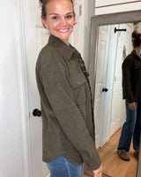 OLGA REVERSIBLE SHACKET OLIVE TO PLAID - STACCATO
