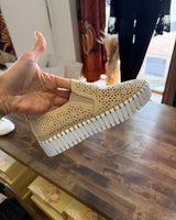 Elevate your casual style with NICOLE-SLIP ON SHOE- BY VERY G. This platform slip-on sneaker features a unique floral notched out design, giving you both comfort and style. The perfect addition to your wardrobe for a touch of flair.