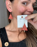 FISH HOOK BACK, CHRISTMAS TREES WITH RED PEARLS AND RHINESTONES