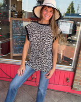 LEOPARD LOVIN SHORT SLEEVE REVERISBLE TOP - BLACK- WHITE BIRCH