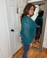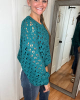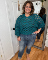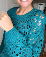HAYLEY PULLOVER OPEN KNIT SWEATER TOP TEAL - ZENANA