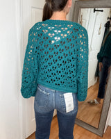CROPPED CROCHET KNIT SWEATER WITH BALLOON SLEEVE