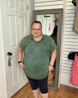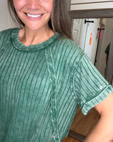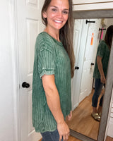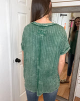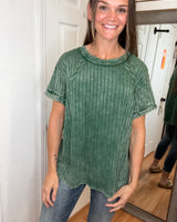 The Maryanne Short Sleeve Top in dark green offers a comfortable, ribbed texture with a stylish acid-washed finish. Its boat-neck design provides a flattering fit that complements various outfits, making it a versatile addition to your wardrobe. Perfect for everyday wear, this top combines casual ease with subtle detail to support your effortless style.