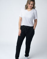 Introducing the amazing Corrine Joggers in black! These joggers feature a ribbed design, convenient pockets, and drawstrings for a customizable fit. The stretchy waistband and cuff bottoms provide ultimate comfort and style. Get ready to run, jump, and lounge in these versatile joggers. These pair perfectly with our matching Corrine pullovers too!