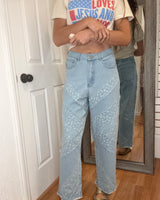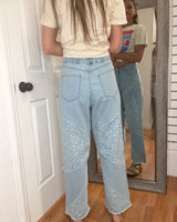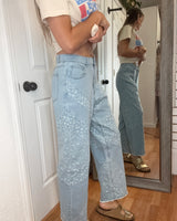 FLORAL PATH WIDE LEG CROP DENIM JEANS - DAVI & DANI